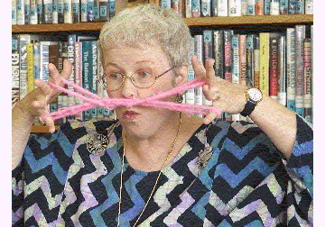 Harlynne Geisler doing the string figure "Cat's Whiskers"